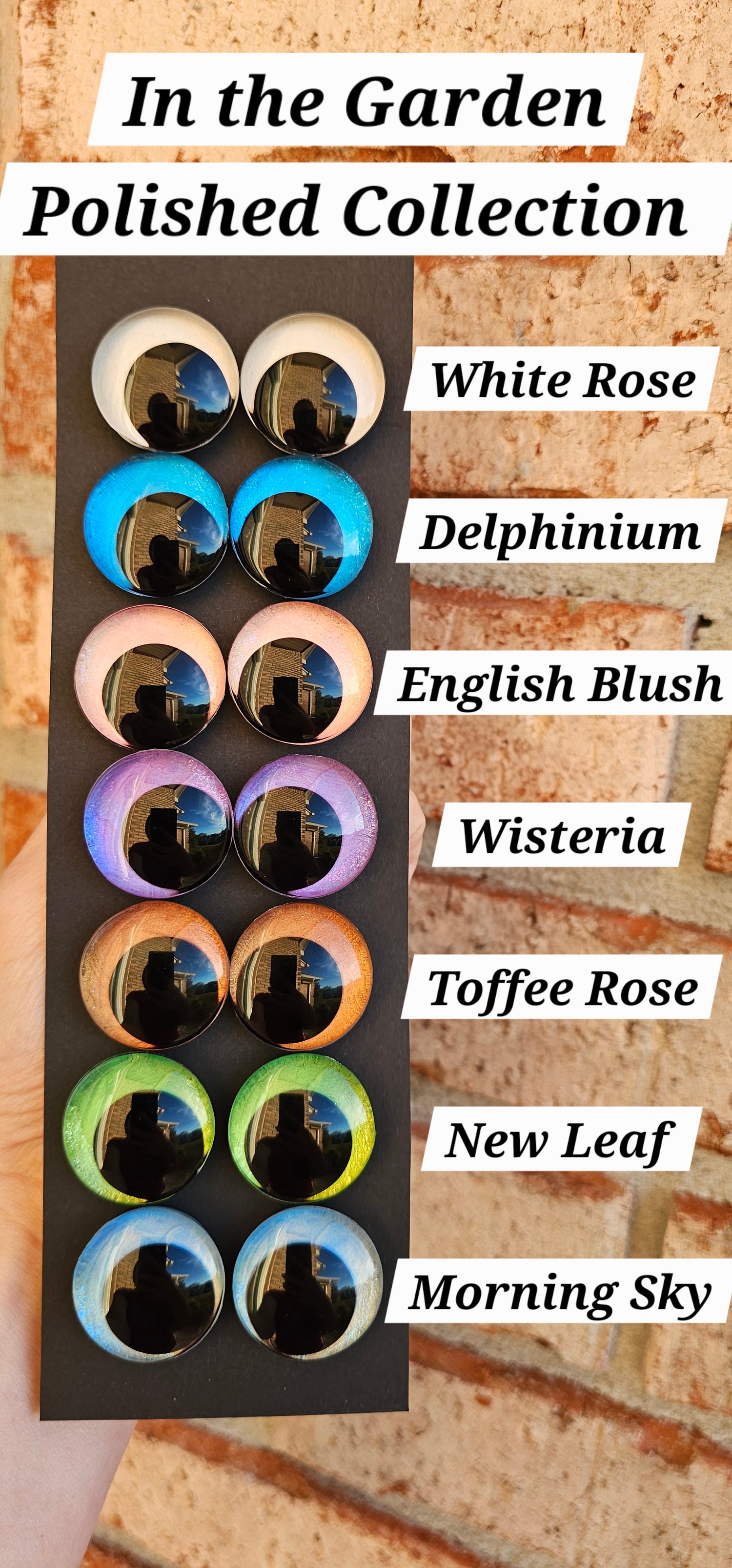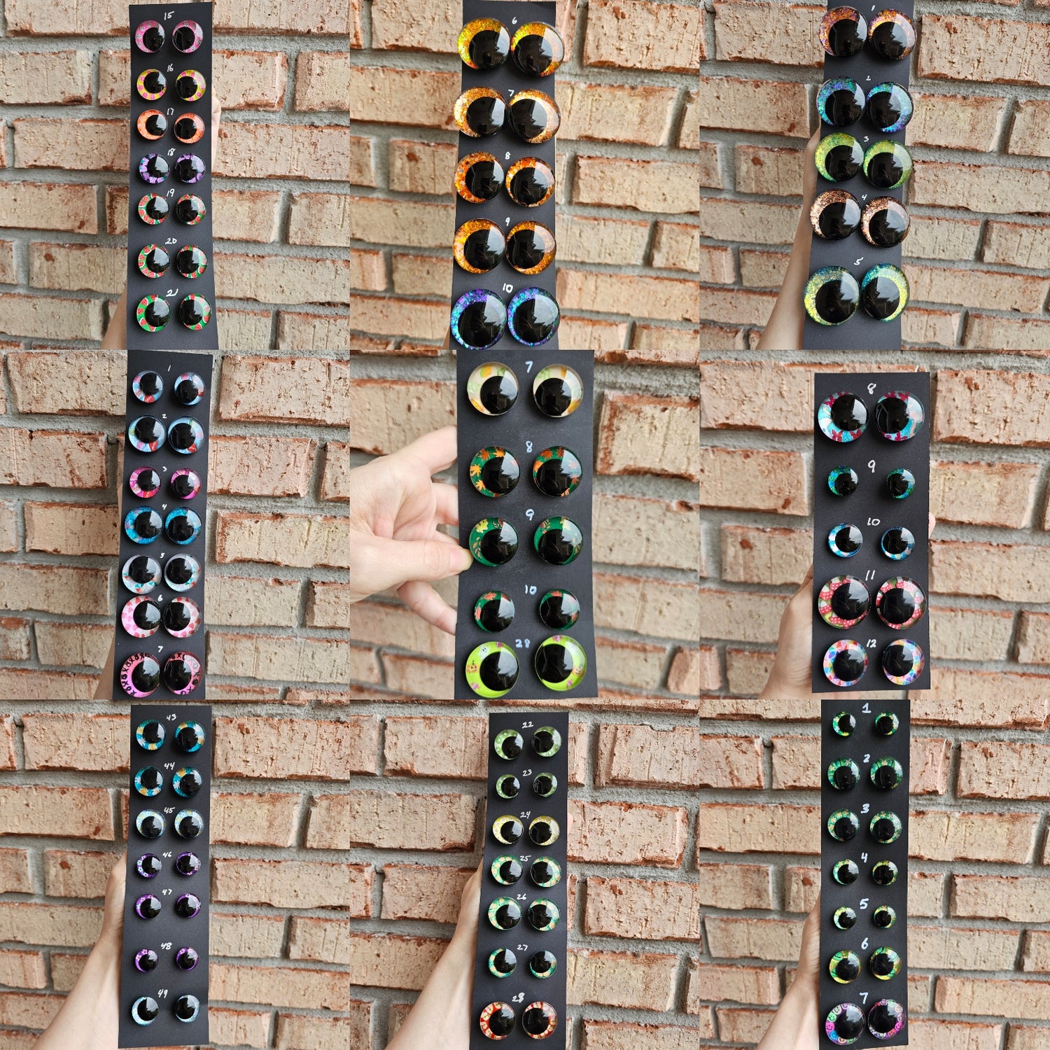 Handpainted recesssed (sinker) safety eyes for amigurumi crochet dolls and stuffed toys. These eyes push down to be flush with your stuffed toy.