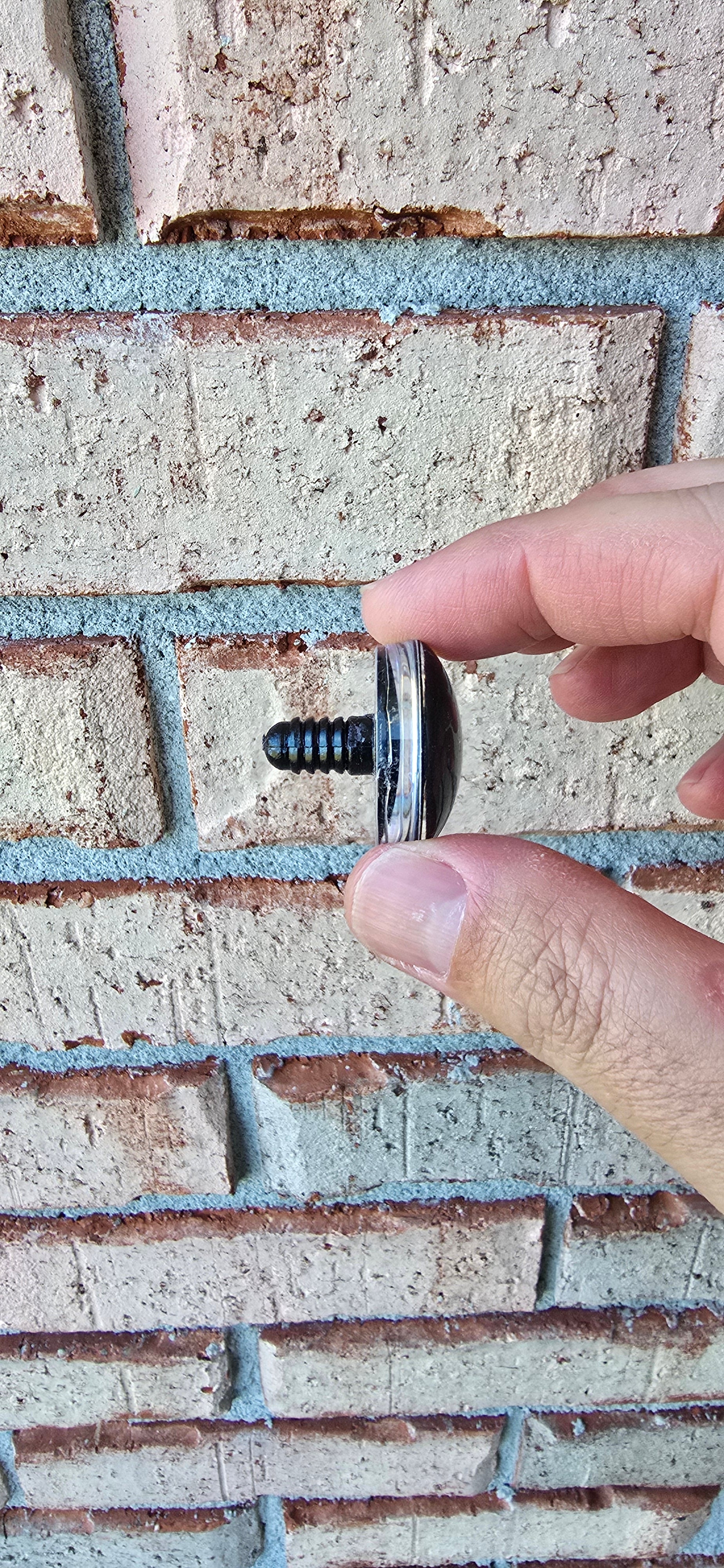 All eyes come with safety backs to install your eyes. We highly recommend the purchase of a safety eye tool or jig to install the backs. We offer a tool in our Etsy store. While the eye backs are very strong and secure when installed, the eyes can be damaged during installation if you use anything other than your hands or a safety eye tool or eye jig. We cannot refund or replace eyes that break from not using a tool.