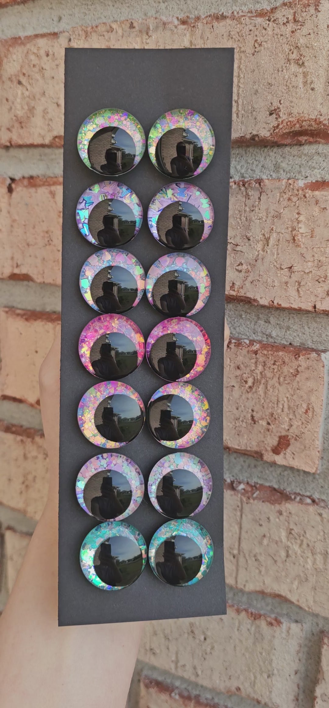 Each eye set is handpainted to order. Your order will be shipped within a week. Please allow more time for larger orders. Colors can be hard to photograph and may vary slightly depending on your screen. I do my best to take pictures in bright lights to show the actual color.
